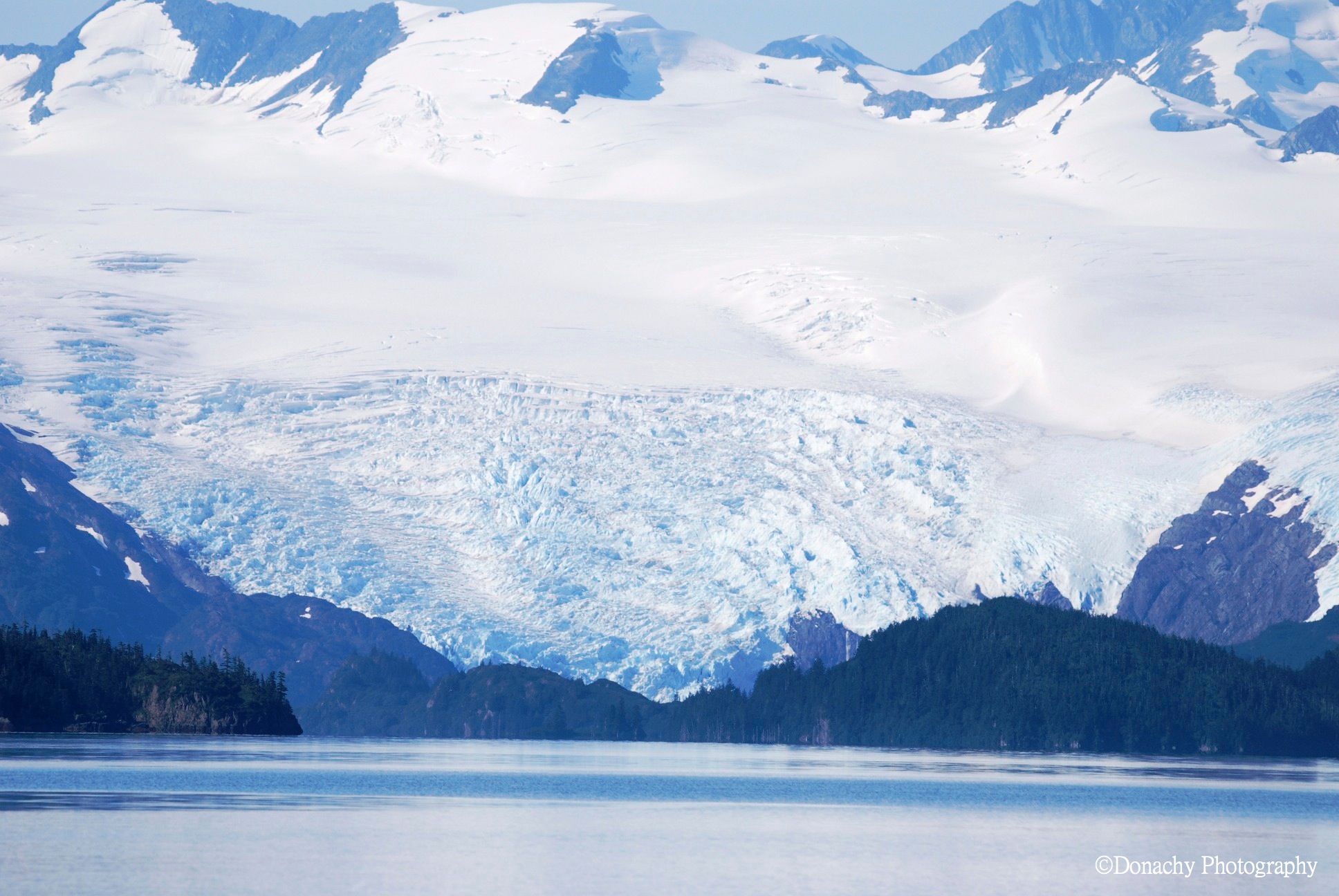 Above: Jagged rocks and islands create a maze leading from Resurrection Bay out into the Gulf of Alaska. Top photo: Massive Blackstone Glacier towers above its namesake bay near Whittier, Alaska.