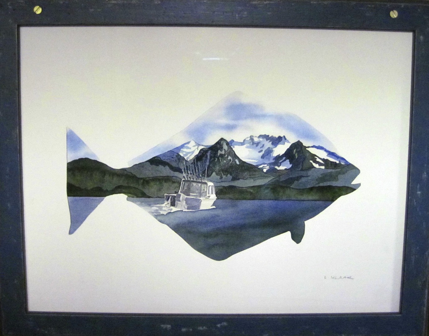 This watercolor by Homer, Alaska artist Leslie Klaar depicts a boat much like our C-Dory heading off for a day of fishing in the great Northwest. It hangs near the door of of our camper.