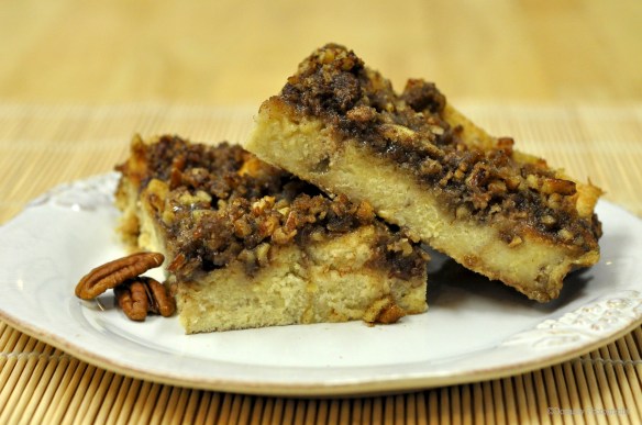- Spread pecan mixture evenly over bread mixture.