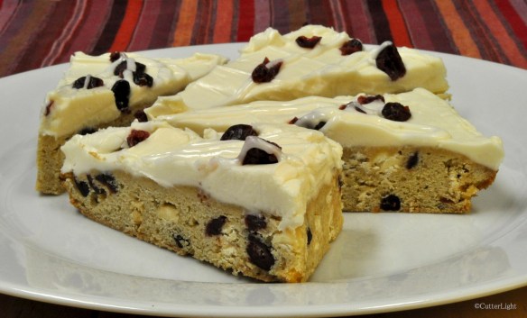 Sweetened dried cranberries and white chocolate chips pair up in a dessert especially appropriate to the winter holidays.