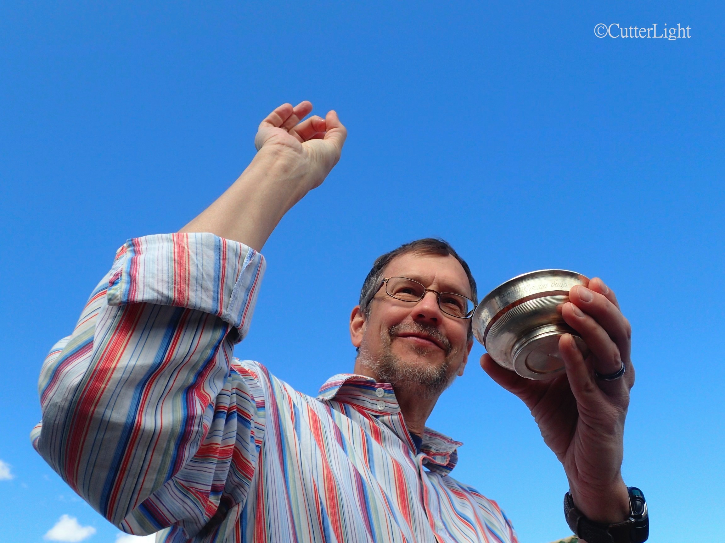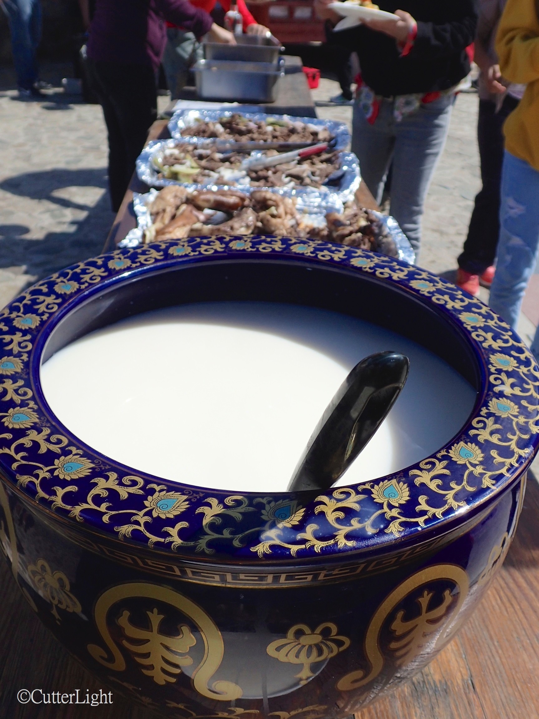 We were told it is customary to check the vodka (for poison?) by dipping one’s right ring finger into the drink and then scrutinizing the finger for black streaks. When the milk vodka passes the test, the drinker gives thanks to the spiritual world by flicking some of the liquid to the sky and to the left and right and then touching his forehead. This particular batch of mare’s milk vodka was brought by one of our colleagues whose family has a special recipe. The drink has a decided aftertaste of blue cheese.