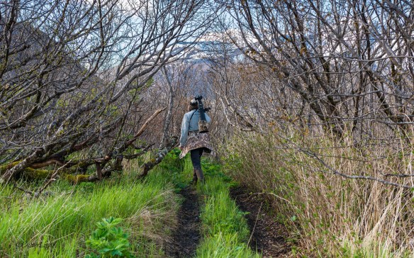 We call this stretch of the trail The Tunnel – a fitting name when it’s crowded in with leafed out alders. We’re usually quiet hikers, but in places such as this where you can’t see more than a few feet ahead, we make a little noise, not wishing to surprise or be surprised by any four-legged beings.