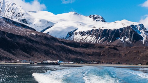 This is the view approaching Chignik Lagoon from the sea, looking toward the Chignik River. Chignik Bay lies a few miles around a small cape to the east. (August 14, 2018)