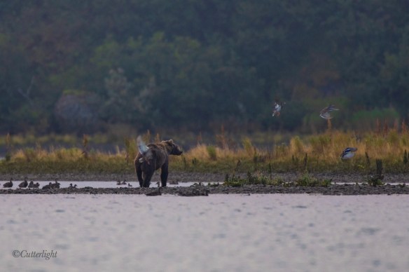 While early spring is a good time to see Mallards along with Tundra Swans on The Chignik, fall presents memorable opportunities to catch them with Brown Bears. (September 8, 2018)