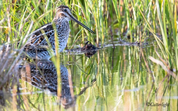 Country jokes involving nighttime forays into dark forests with flashlights and burlap bags aside, snipe hunts, these are fascinating birds. Grouped along with yellowlegs and tattlers as shorebirds, their more chunky appearance is owing to impressively large breast muscles. These muscles -prized by hunters as a delicacy – enable snipe to achieve astounding aerial speeds of over 60 miles per hour.