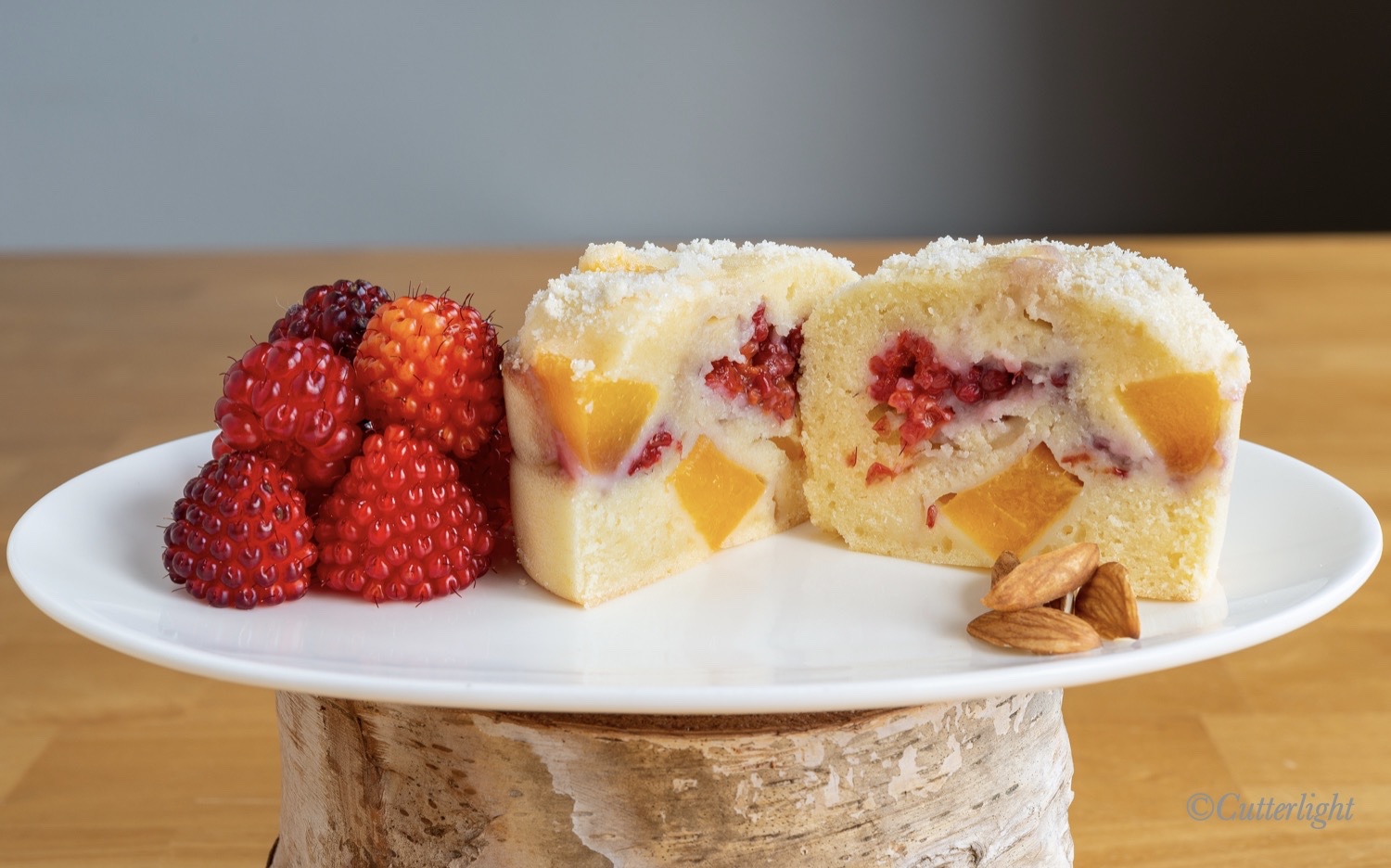 Peach Melba Reimagined as Summertime Salmonberry Peach Muffins
