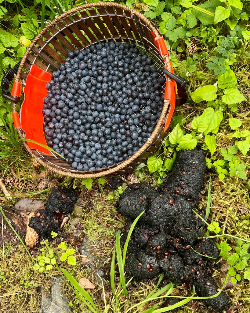 It was a lovely hike. Blueberries and watermelon berries lined the trail. Birds were singing. Sounds of rushing water running downstream from a glacial lake. All was quiet and peaceful until I saw this. A Very Big reminder that we are picking berries in Bear Country. (We never did meet up with the maker of this pile.)