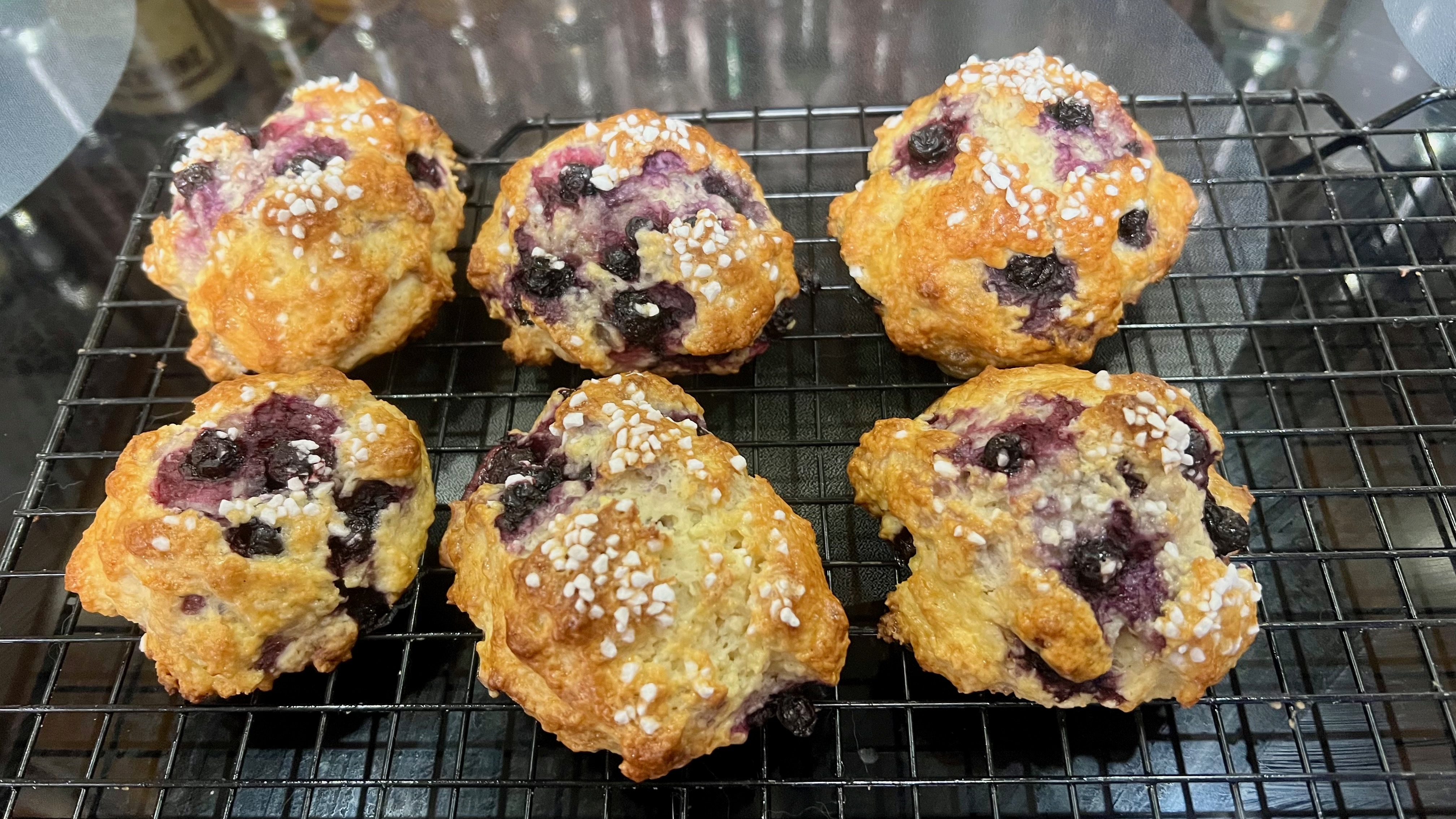 Today’s assignment was testing out the new machine before burning the boxes they came in. After a quick forage in our freezer, frozen wild blueberries were the inspiration. Cutting in butter into a scone recipe sounded like a delicious trial for the new machine.