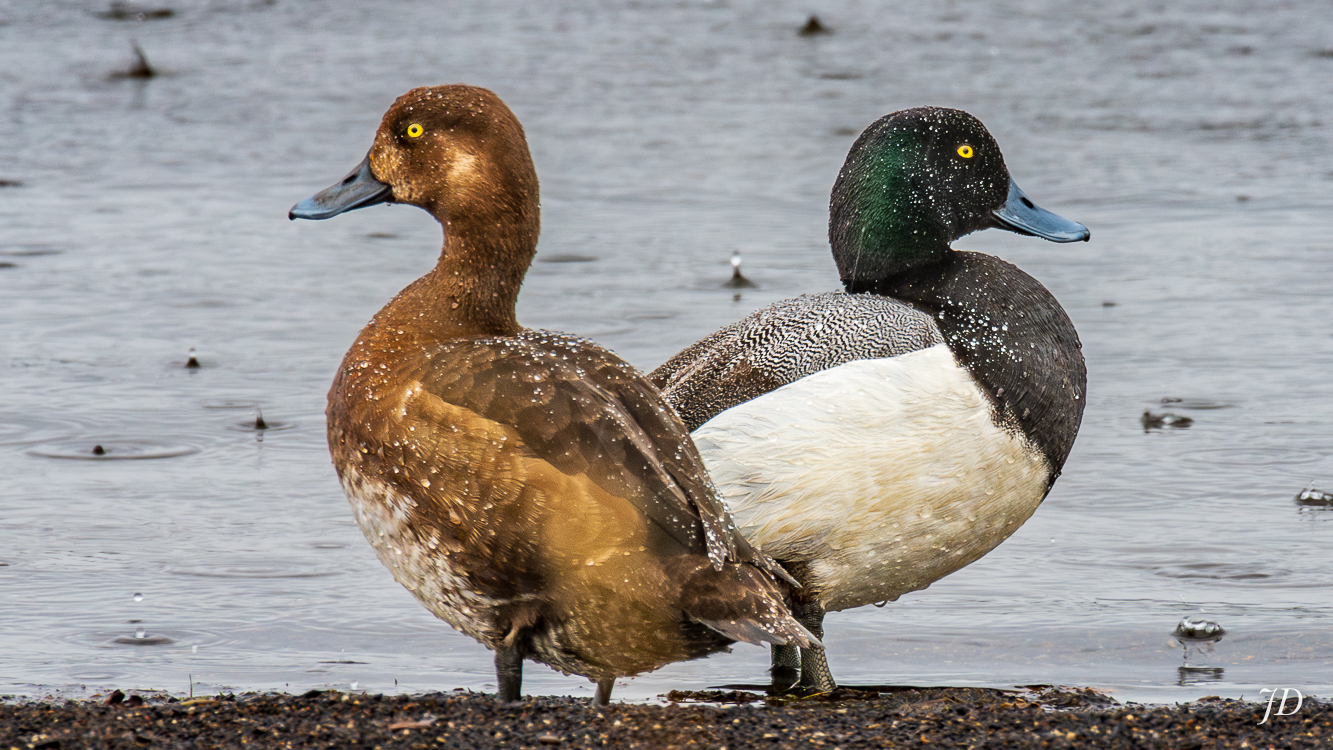 The term Scaup may be derived from the Scottish scalp which refers to bivalves such as clams and mussels, preferred food items for these diving ducks, though they also eat various types of aquatic vegetation. Interestingly, they are the only circumpolar diving duck – hence the European origin of their vernacular name. Their “quack” is a bit more hoarse or nasal than that of the familiar Mallard, and is often comparatively quiet. But at The Lake, it was a music we associated with spring, and we find now that we miss it.
