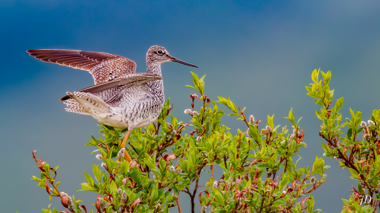 Greater Yellowlegs (as well as Lesser Yellowlegs and Wandering Tattlers) are well known as shorebirds that often perch in trees, particularly near their nesting sights, which are on the ground. They are abundant throughout the Chignik River drainage where they primarily feed on various small fishes.