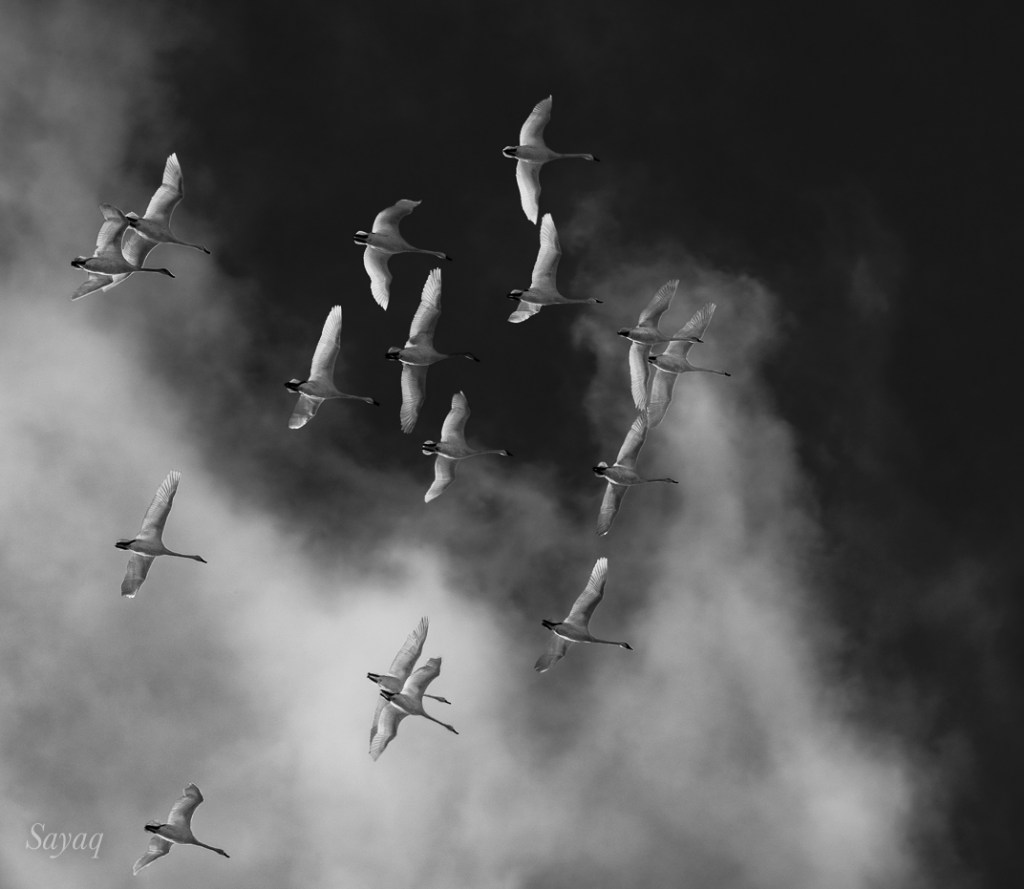 Spring Angels Returning Tundra Swans, flying above the Chignik River – Chignik Lake, March 17, 2017
