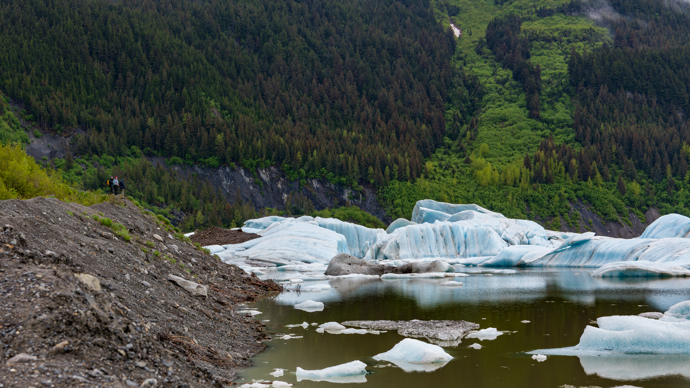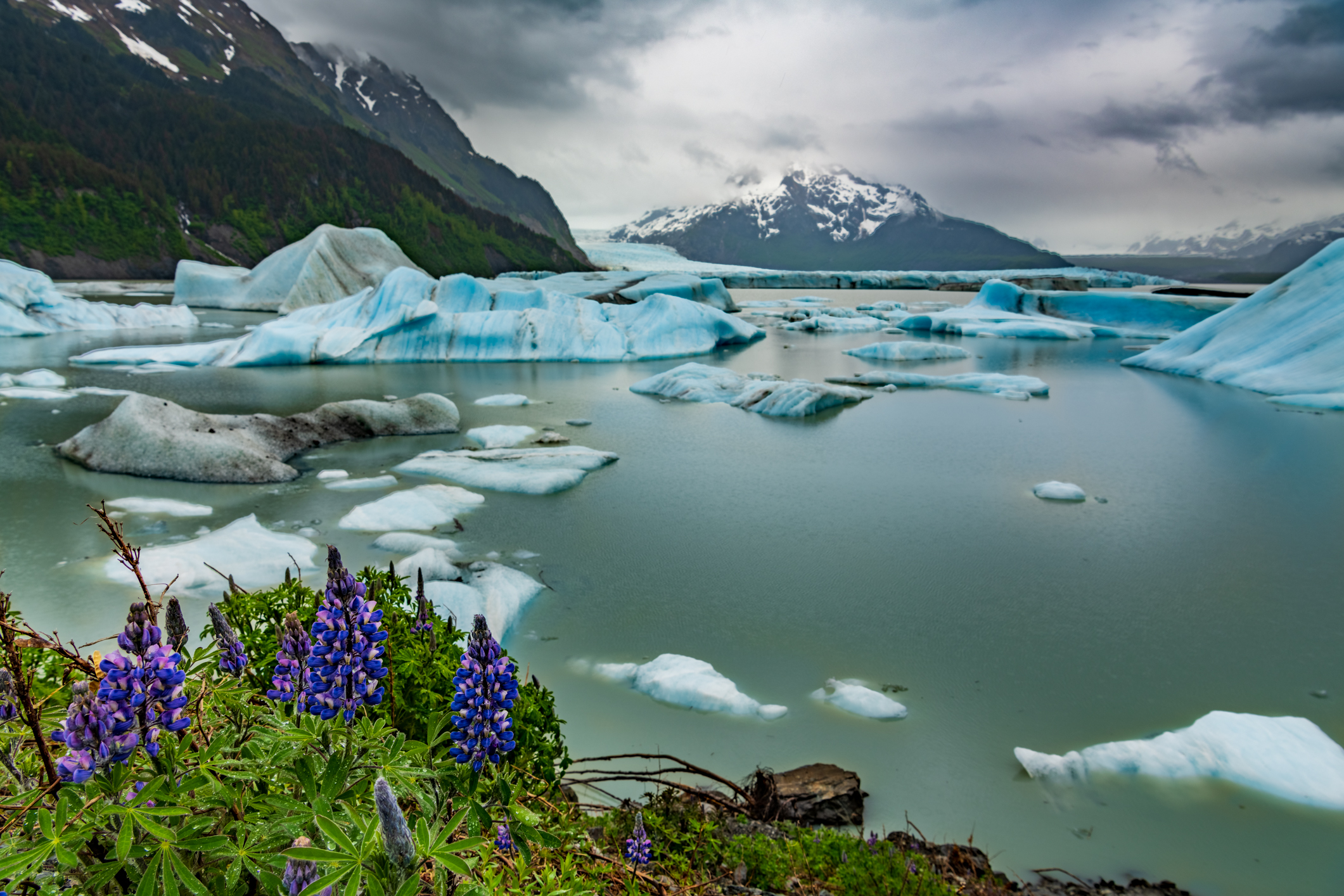 Quite a few of the images I capture are key-worded “vast” in my Lightroom catalog. Here, as I was walking along the glacial moraine at Sheridan Lake, I turned around just in time to catch Barbra and two visiting friends taking in the landscape. Located about 17 miles from our home in Cordova, a short walk through spruce and hemlock forests leads to this magical lake where, in wintertime people ice skate among massive structures of ice and in springtime and early summer kayak and canoe through the same setting.