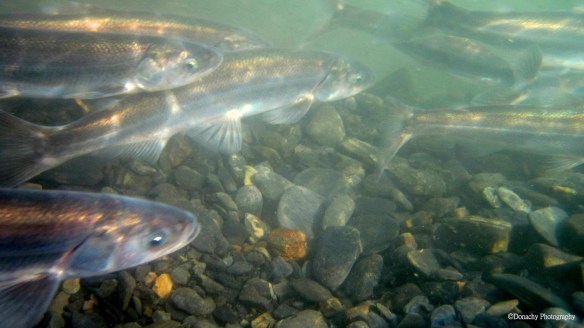 A seemingly endless school of eulachons makes its way up an Alaskan river.