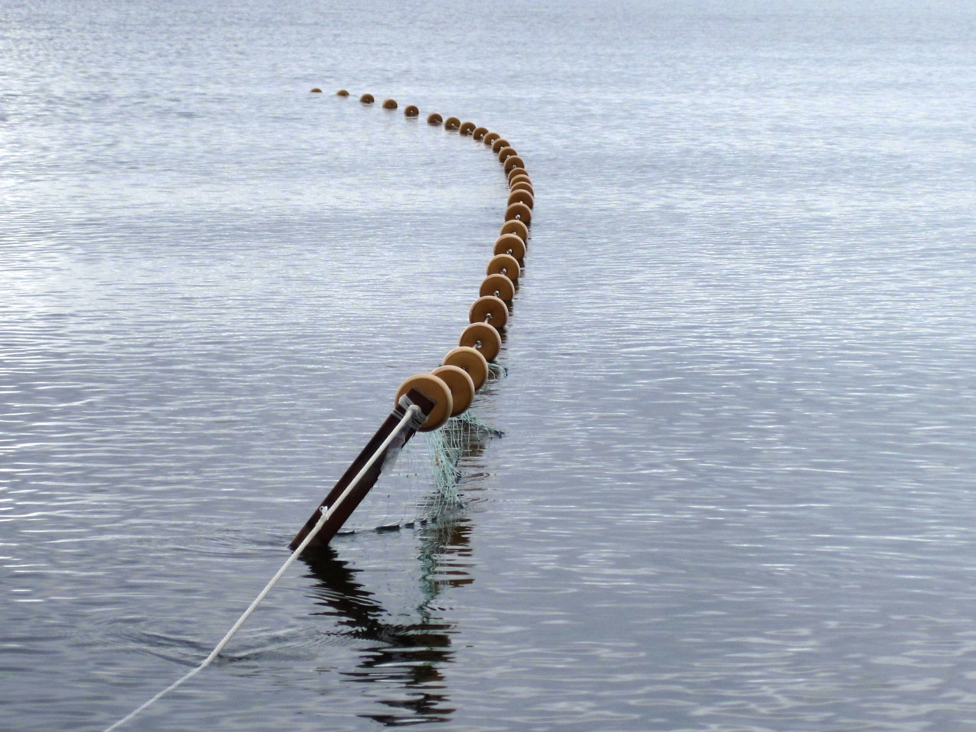 The first order of business is to get a big enough weight out from shore to securely anchor the far end of the net. In Shishmaref and lots of other places, they use small dingies or other watercraft to accomplish this. But the current runs strong near Point Hope, and high winds can come up quickly. In the past, lone anglers launching small boats off the beach led to drownings. So a different method for getting the cloth sacks of rocks which serve as weights out into deeper water was developed. Here fishermen use long poles–sometimes lengths of two-by-fours nailed together. The fish often run quite close to shore, so even 25 feet or so can be far enough and a 30 foot net set is all you need. The pole is threaded through a loop on the top of the weight, enough floatation in the form of plastic buoys is attached to the end of the pole to keep everything floating as its pushed out, and then the pole is pulled back and the weight drops to the bottom.
