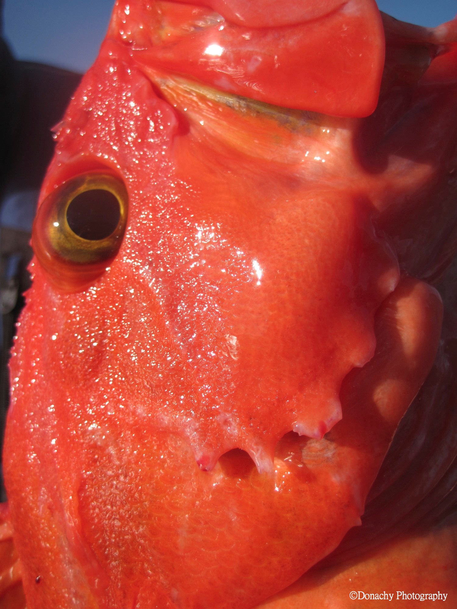 Yelloweye rockfish (Sebastus ruberrimus), a species of the Pacific Coast from Baja Mexico to Prince William Sound Alaska, is prized for its delicate flavor.