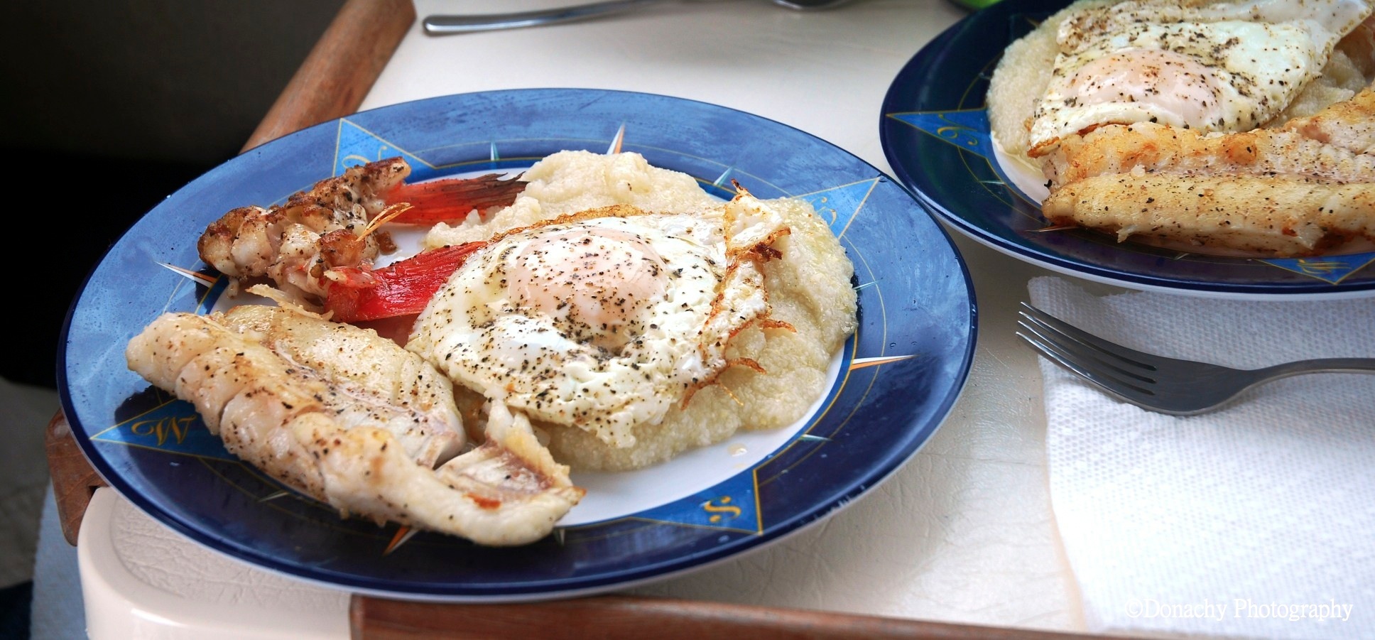 Not a fancy breakfast, but a special one. I kept the seasoning simple: a little sea salt and black pepper ground coarse. The steaming plates of food accompanied by French roast coffee made for a great start to another day in paradise.