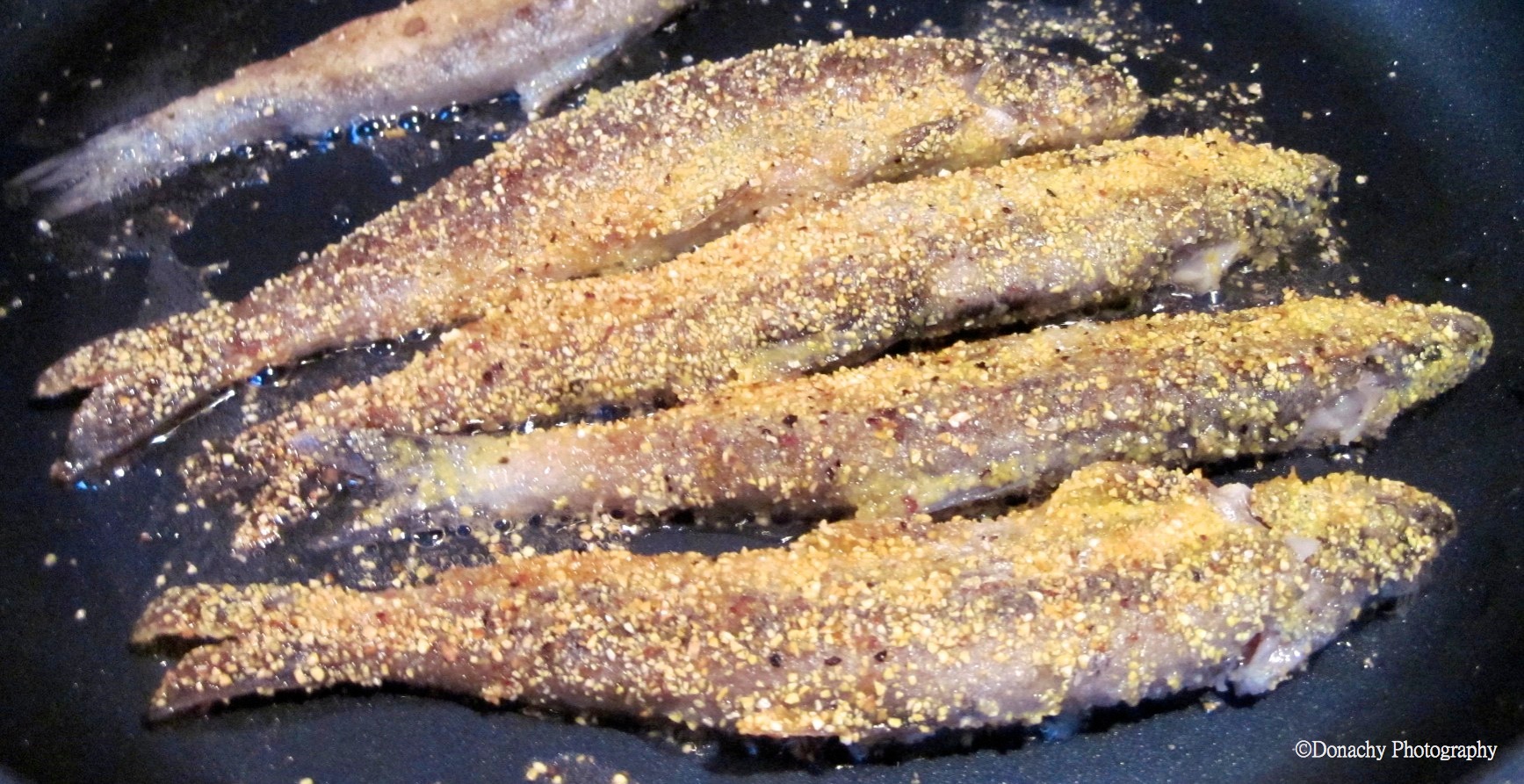 The meat and bones of eulachons are quite soft. So soft, in fact, that when pan fried, the bones are barely noticeable. Their flavor is wonderful, but they definitely benefit from the addition of some crunch.