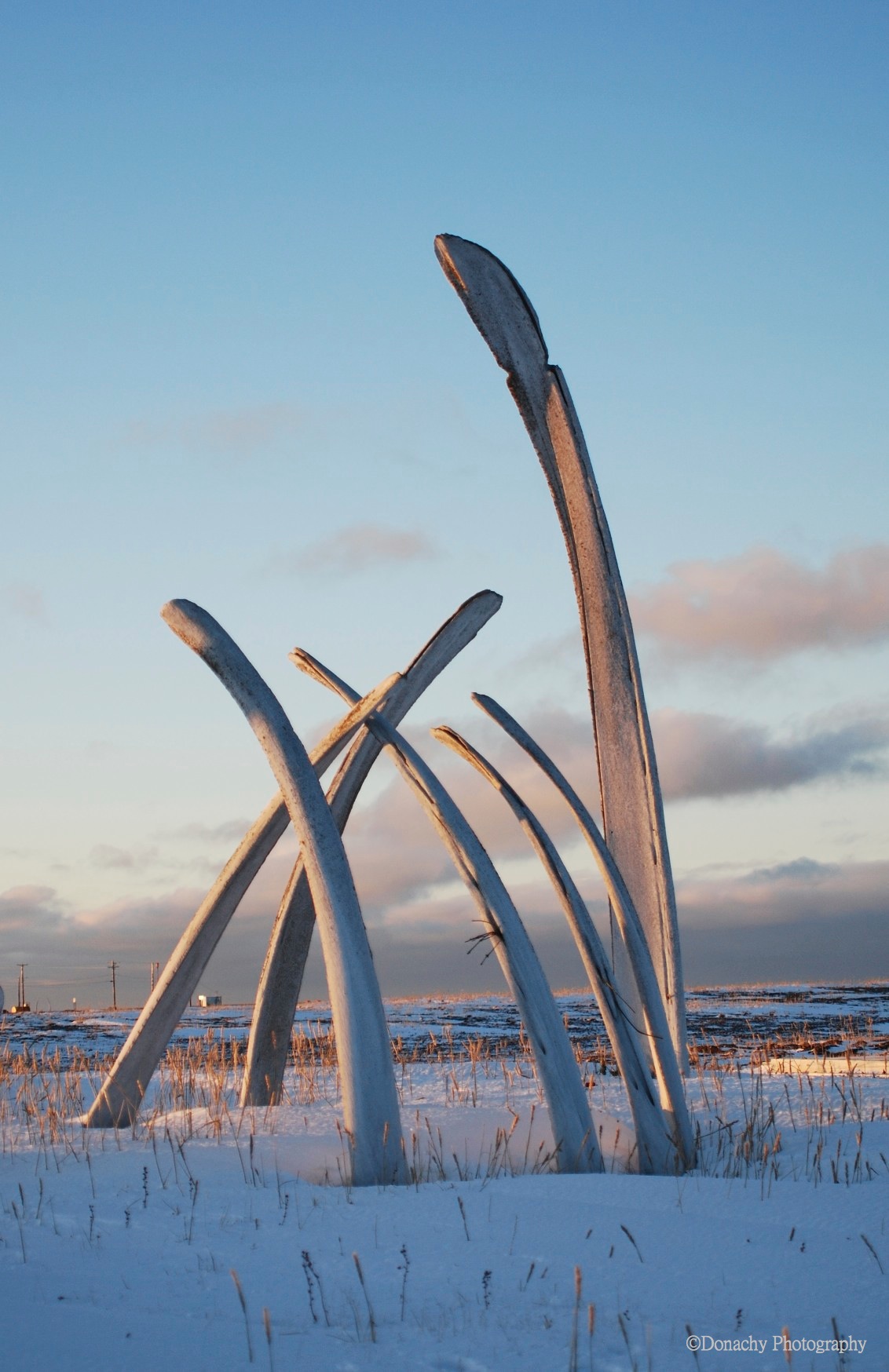 Whaling Festival Site, Point Hope, Alaska. The larger bones presented as arches are the jawbones of Bowhead Whales. Traditionally, the skull is returned to the sea so that the whale’s spirit is properly released. Point Hope, Alaska, August 12, 2012