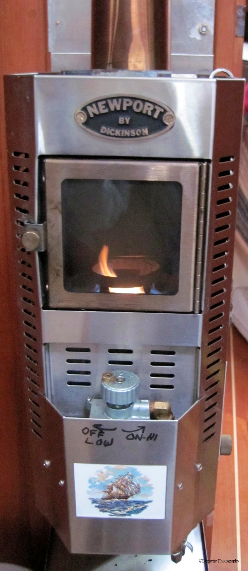 It’s like having a miniature fireplace onboard – cozy and downright romantic. And there’s just enough room on top of the heater to, say, cook a couple of sweet potatoes or get a small kettle of water ready for tea.
