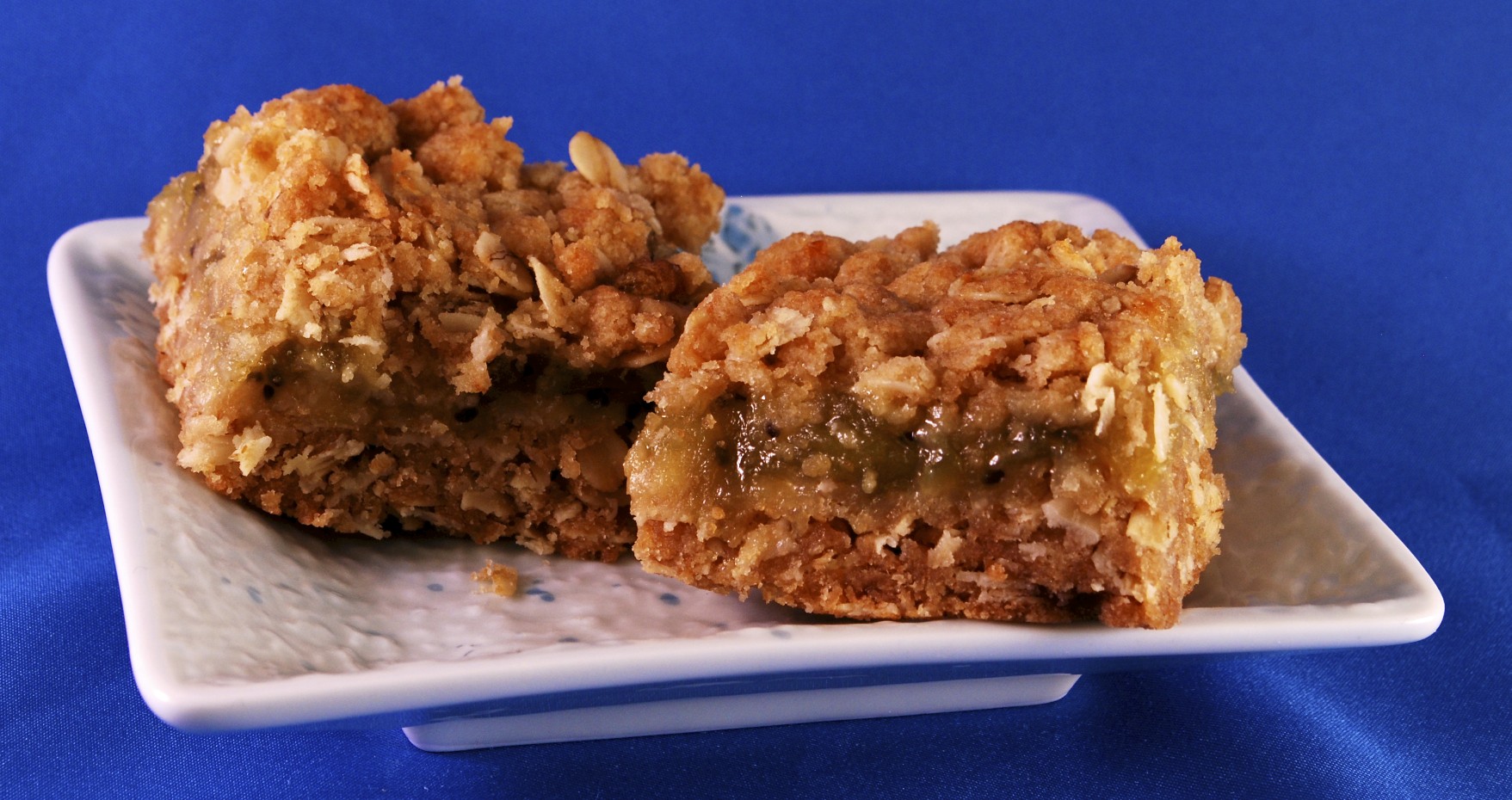 After doing a bit of research about what could be done with jams, I settled on a raspberry oatmeal bar recipe. I followed the recipe except for the type of jam…homemade kiwi! It came out terrific. The tasty bars are mostly sweetened by the jam and have the healthy properties of oats. Mostly, they taste delicious. After eating two, Jack suggested my next endeavor should be my own little bake shop. He says my baking is now that good. Thanks, Jack!