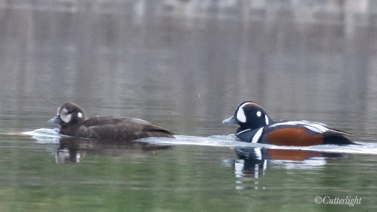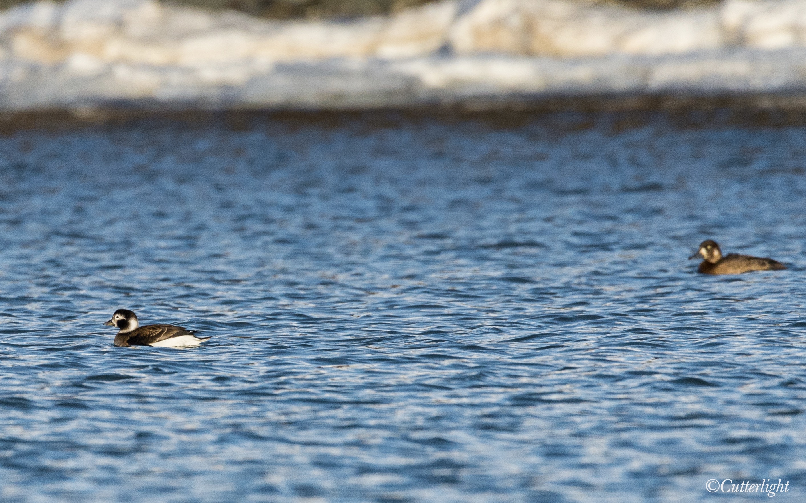 Dapper drake and handsome hen, a pair of Common Goldeneyes hang out at The Lake on a calm, midwinter day. (Chignik Lake, January 2, 2017)