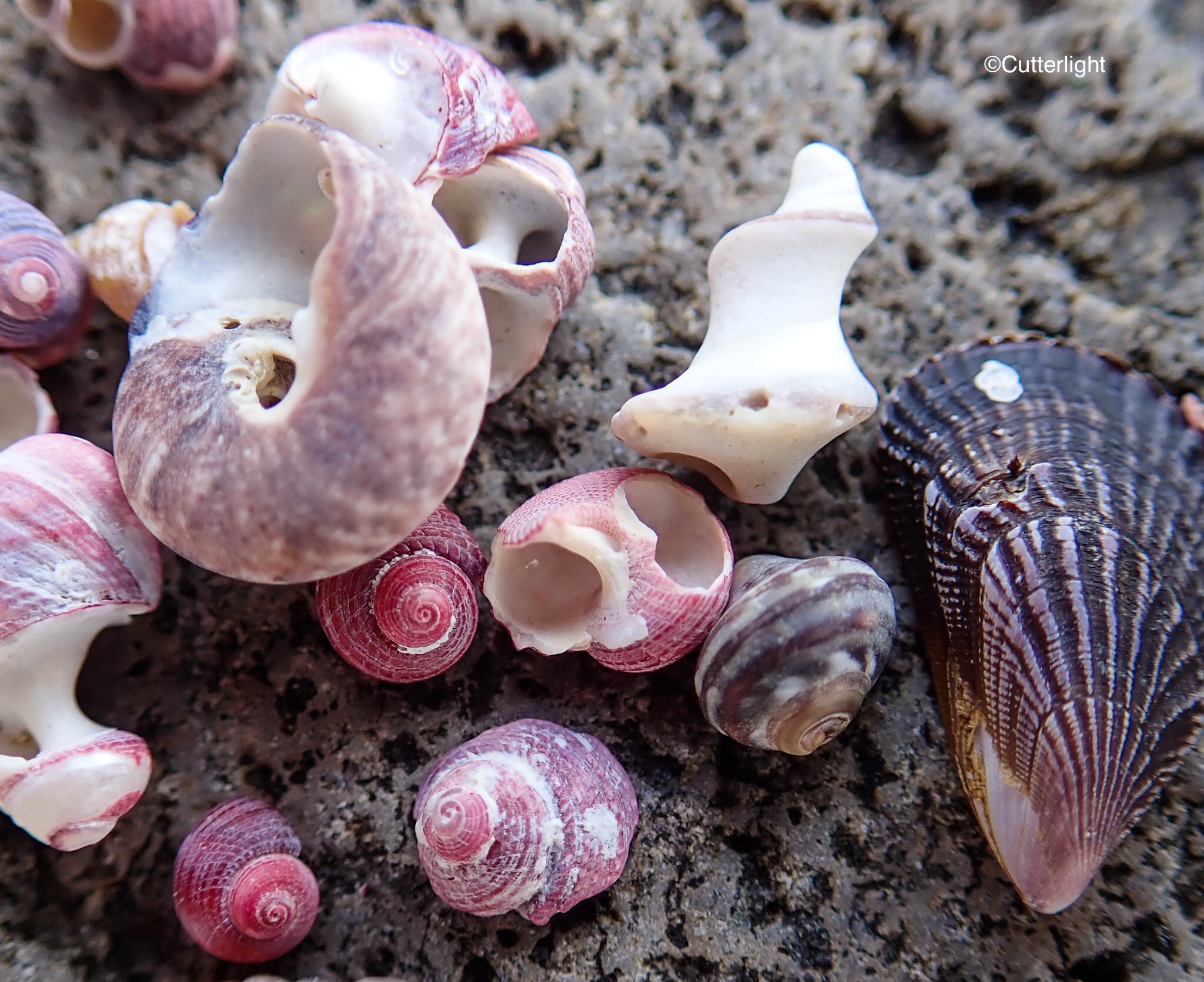 We stowed our bike bags beneath the tent’s fly and headed down an inviting pathway to what the map boasted as a swimming beach. Although the sun was high in the sky, I wasn’t prepared to take a chilly Sea of Japan swim. I noticed that the beach was covered with countless tiny treasures – blue, green and amber beach glass polished smooth, crab husks, miniature clam shells, dried sea urchin shells- some with their spines still attached, and colorful small rocks with interesting patterns. Larger flat rocks offered perfect surfaces on which to create found art displays with favorite finds from the beach. What a lovely, relaxing way to spend part of an afternoon.