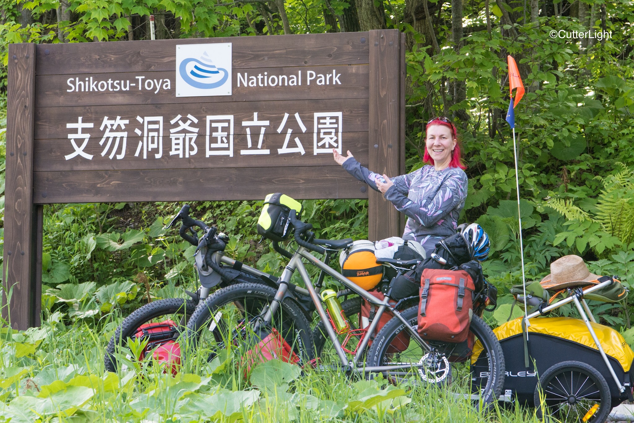 This is the second installment from our videos about bicycle trekking and camping in Hokkaido. In this leg of our 1,300 mile tour, we pushed and cruised from Shiraoi to Jigokudani and then on to Lake Toya in Shikotsu-Toya National Park. Listen for the singing cicadas and the bubbling mud pots in the first part of the video. In the second part of the vlog, Barbra kicks in with her “amazing” commentary! Barbra says – I promise to bring a thesaurus next time. 🙂