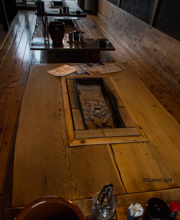 Each table featured a grill which the wait staff filled with hot wood coals when customers were seated.