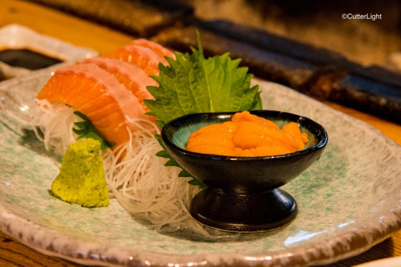 At this time of year, virtually all of Hokkaido features creamy, fresh-from the ocean Sea Urchin. Here a bowl is served along with salmon sashimi.