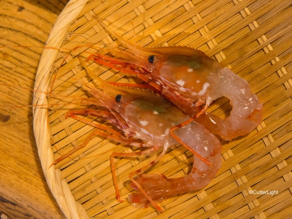 Our waiter first presented this pair of ama-ebi (Northern Deepwater Prawn) live, then took them to the kitchen where they were prepared for the table.