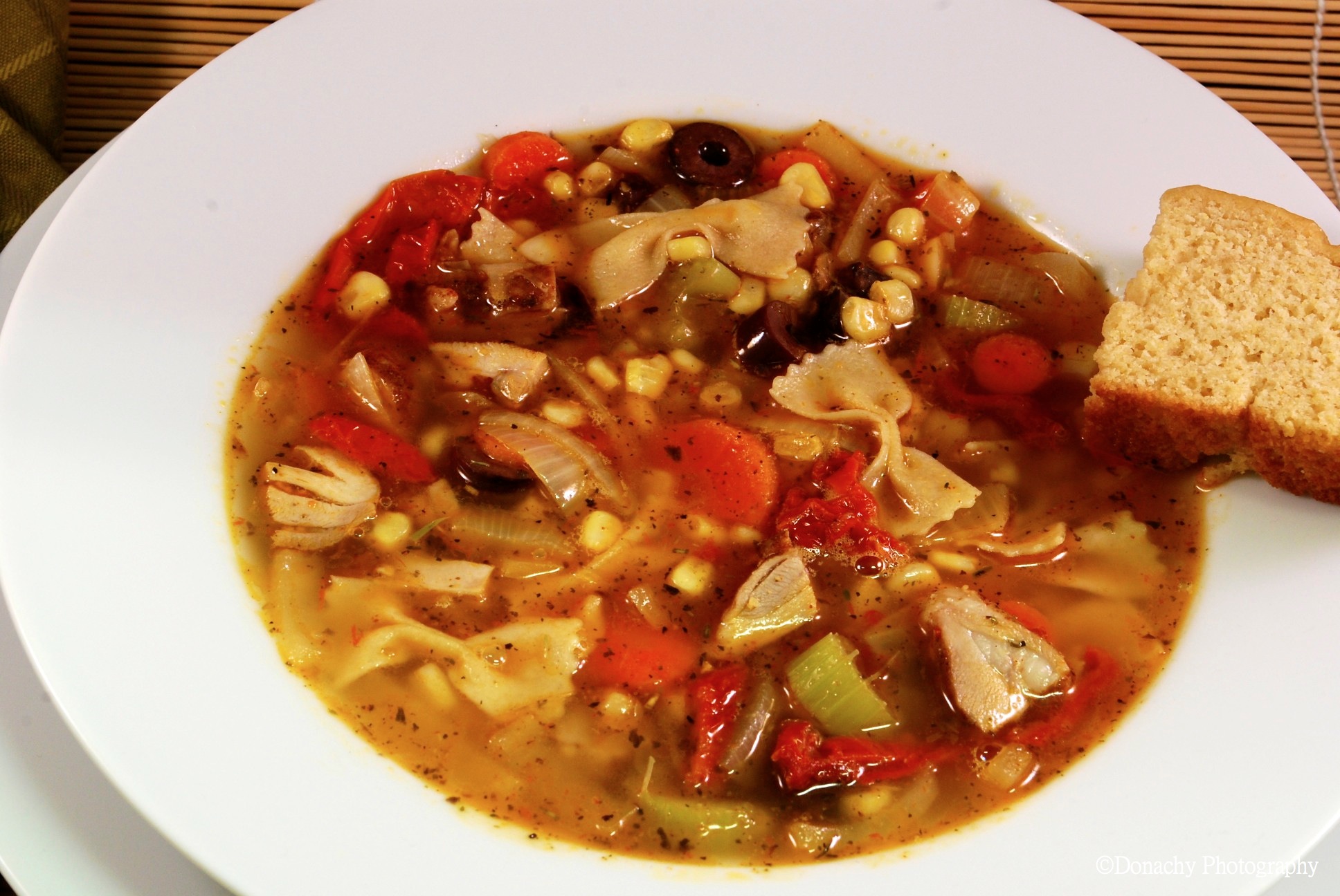 And then, out of the blue, a friend gave us two green bell peppers. Roasted and skin peeled, these would provide the tangy sweetness I was looking for. I had a large carrot in the fridge that needed to be used, so I diced and sautéed it and added it to the ingredients as well.