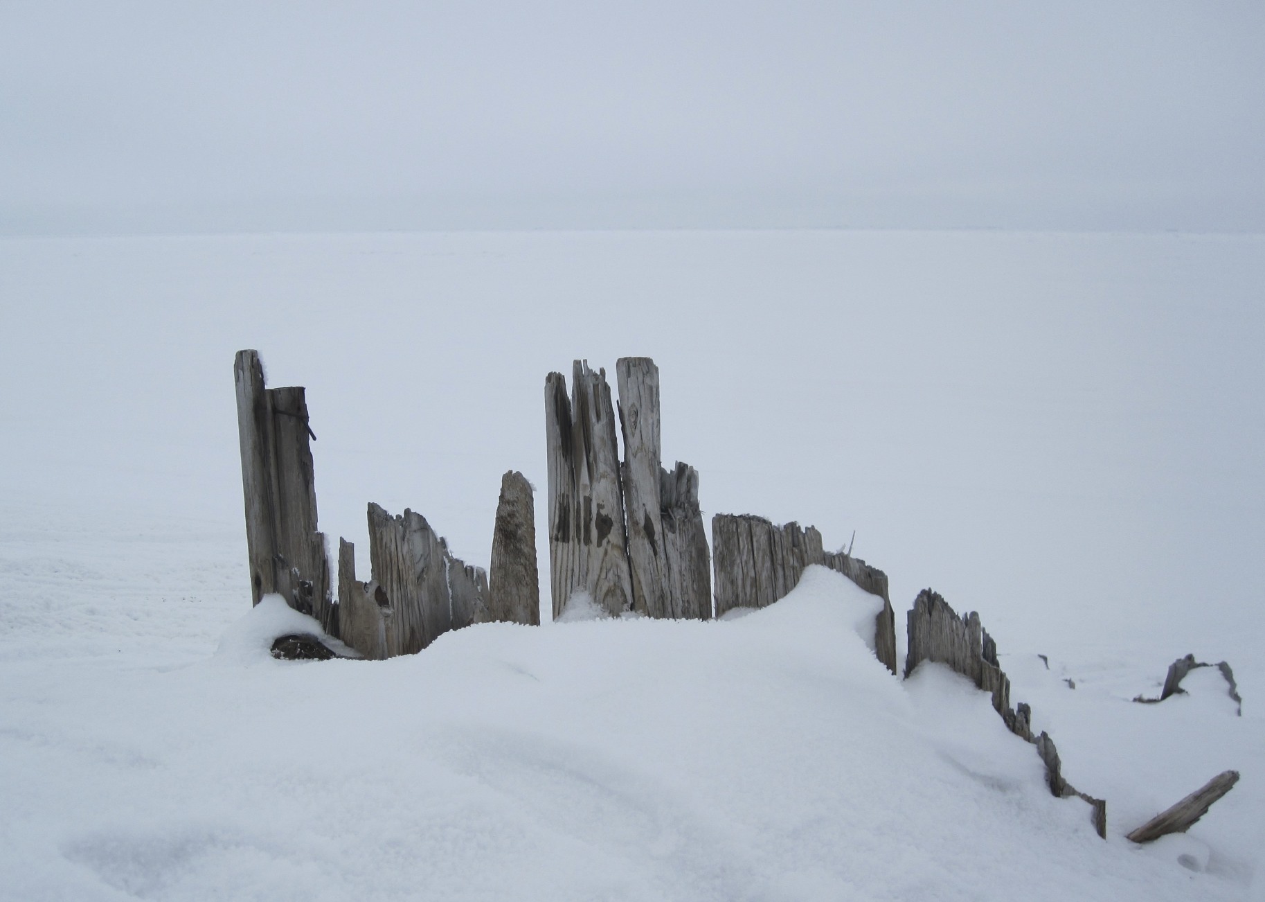 A small skiff seems to await the Chukchi Sea’s thaw.