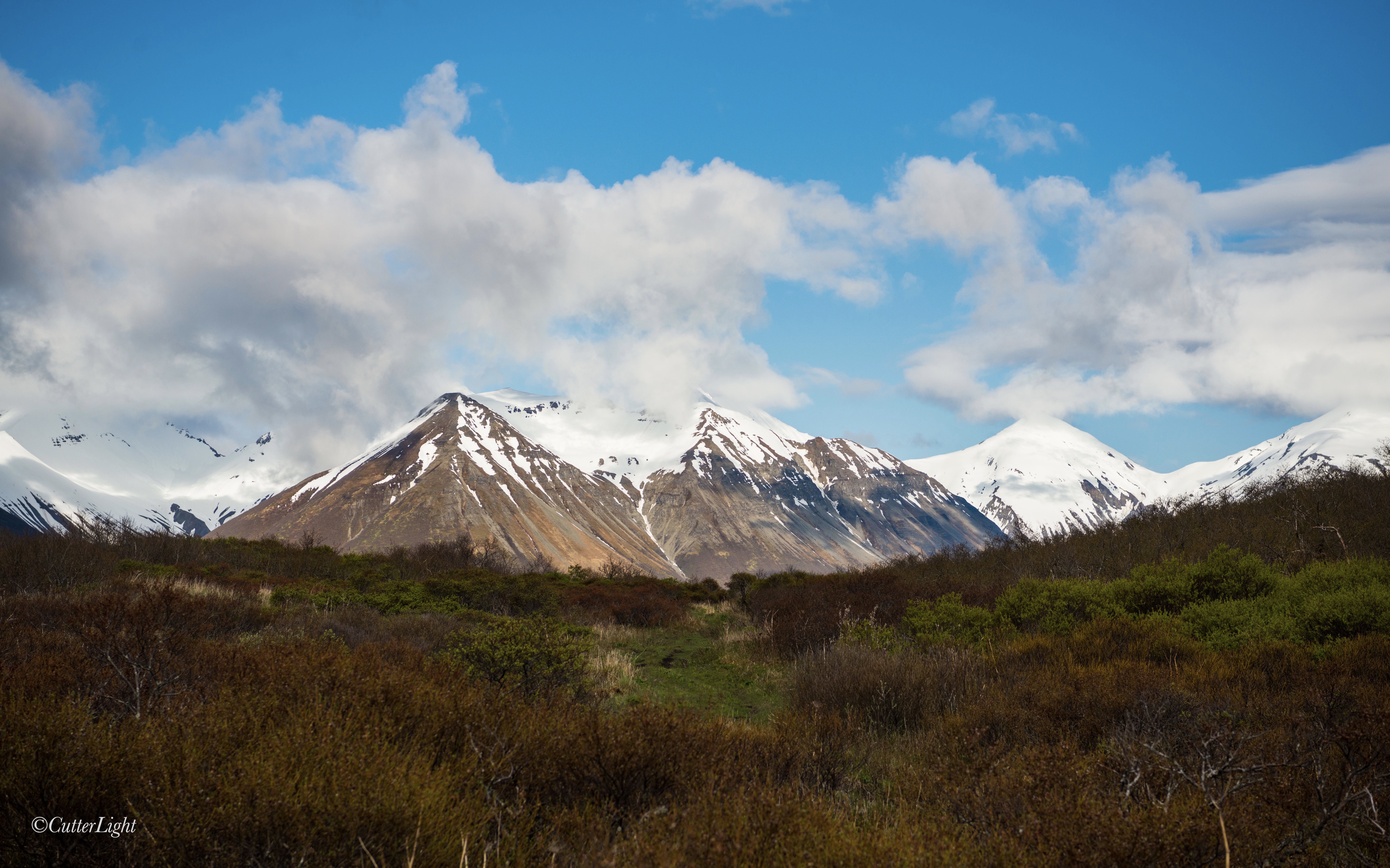 Every hike is different. The landscape changes from day to day, and with the shifting play of light sometimes the changes are from moment to moment. In the depths of winter, it is possible to hike this trail and encounter nothing save for perhaps a handful of chickadees – a species we’ve come to greatly admire for their intelligence and tenacity. The Native American wisdom that “Every animal knows more than you know,” sinks home when you’re out on a cold, blustery day and these little guys are going about their business, thriving. On this morning we took note of the receding snow line, budding alders, willows leafing out and new flowers, fresh shoots of all kinds of plants popping up everywhere – geranium, yarrow, fireweed, lupine, iris, cow parsnip, star gentian… Each of these plants is like a calendar of the summer, marking the days in different stages of growth.