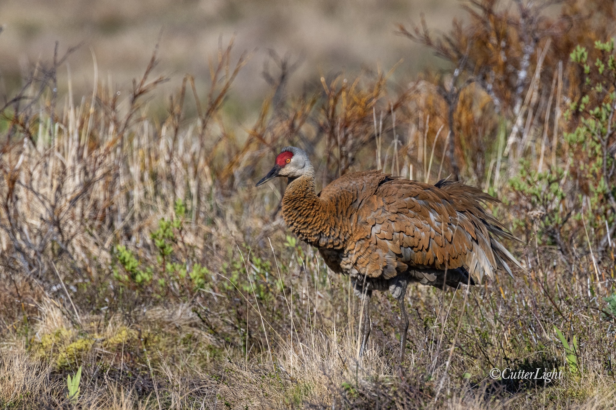 A Sandhill Crane fluffs his feathers on a patch of tundra and scrub a short hike from Chignik Lake. The photos accompanying this article were all taken on May 23, 2019 within 2½ miles of this village of about 50 residents.