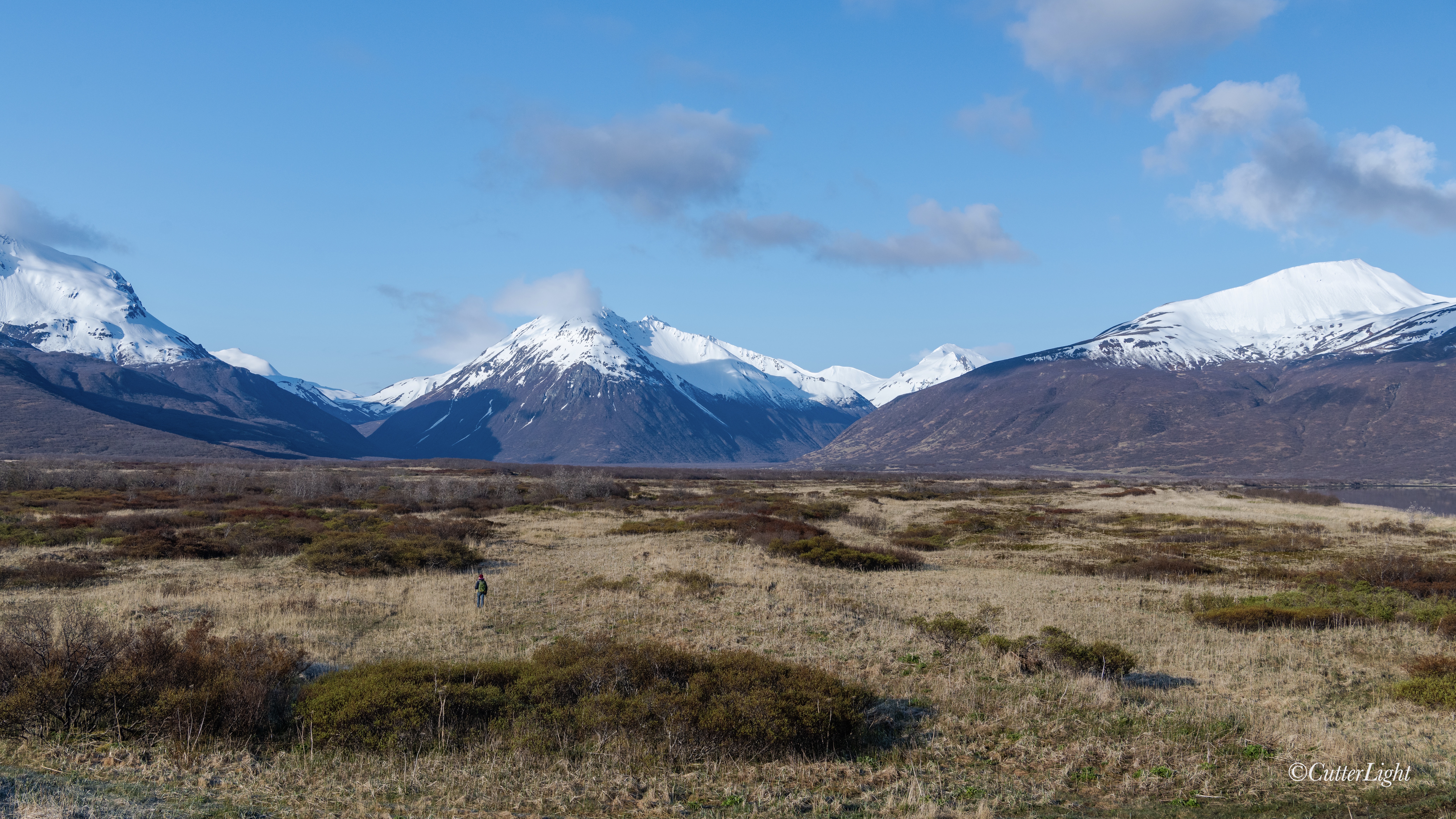 We have been coming across tracks for close to two weeks – tracks left by large bears, tracks left by sows and their cubs, tracks left by young adults perhaps embarking on their first full season alone. But these were the first two bears we’ve seen this year. Skinny from a dormant winter and quite likely from not having gotten as many salmon as they would have liked given the low return of salmon to the Chignik River last year, these spring bears will manage to begin to put on weight on a diet of grass and tubers. They’ll even eat insects this time of year.