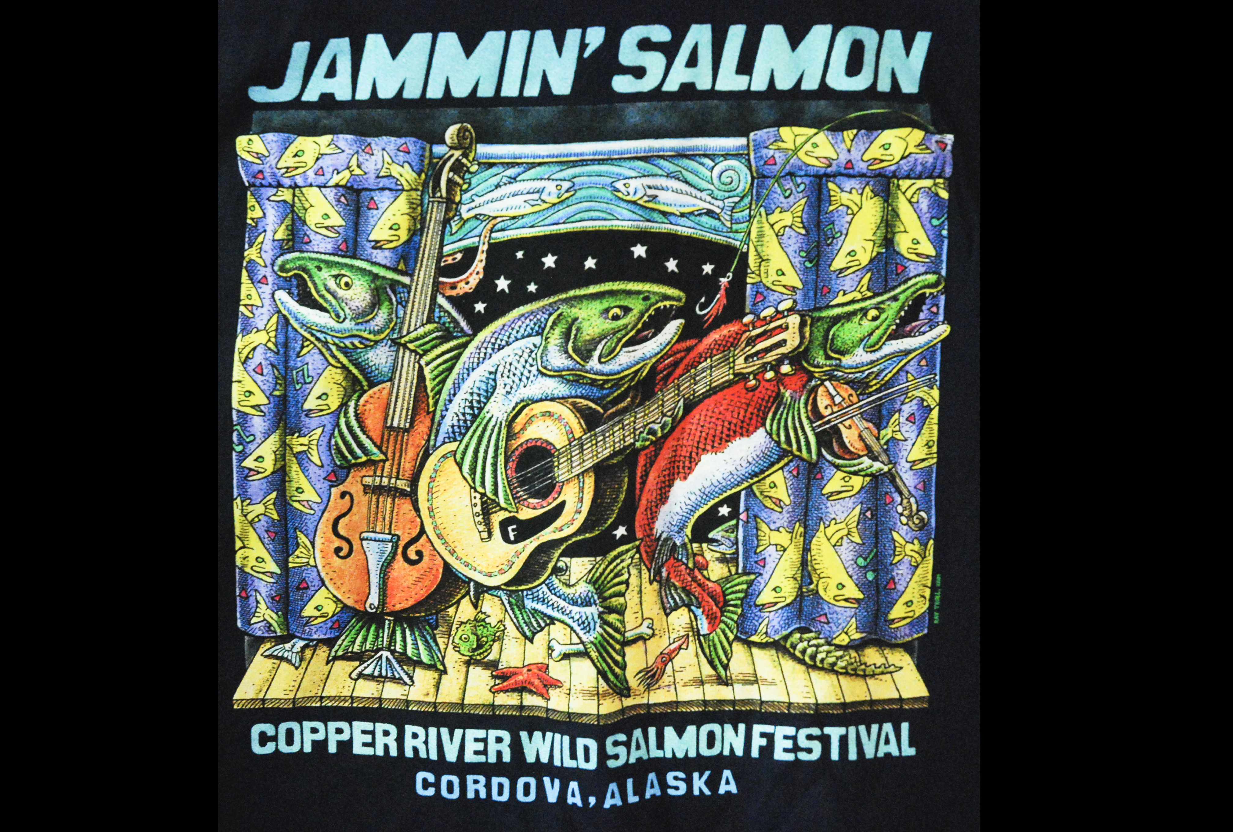 Ray Troll designed T-shirt from the annual Salmon Festival and running events in Cordova, Alaska