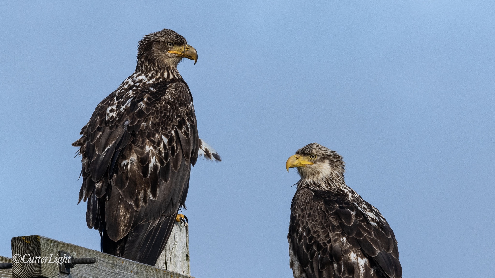 Young Eagles waiting for someone to come in with fish.