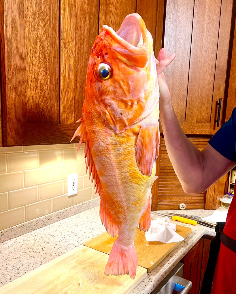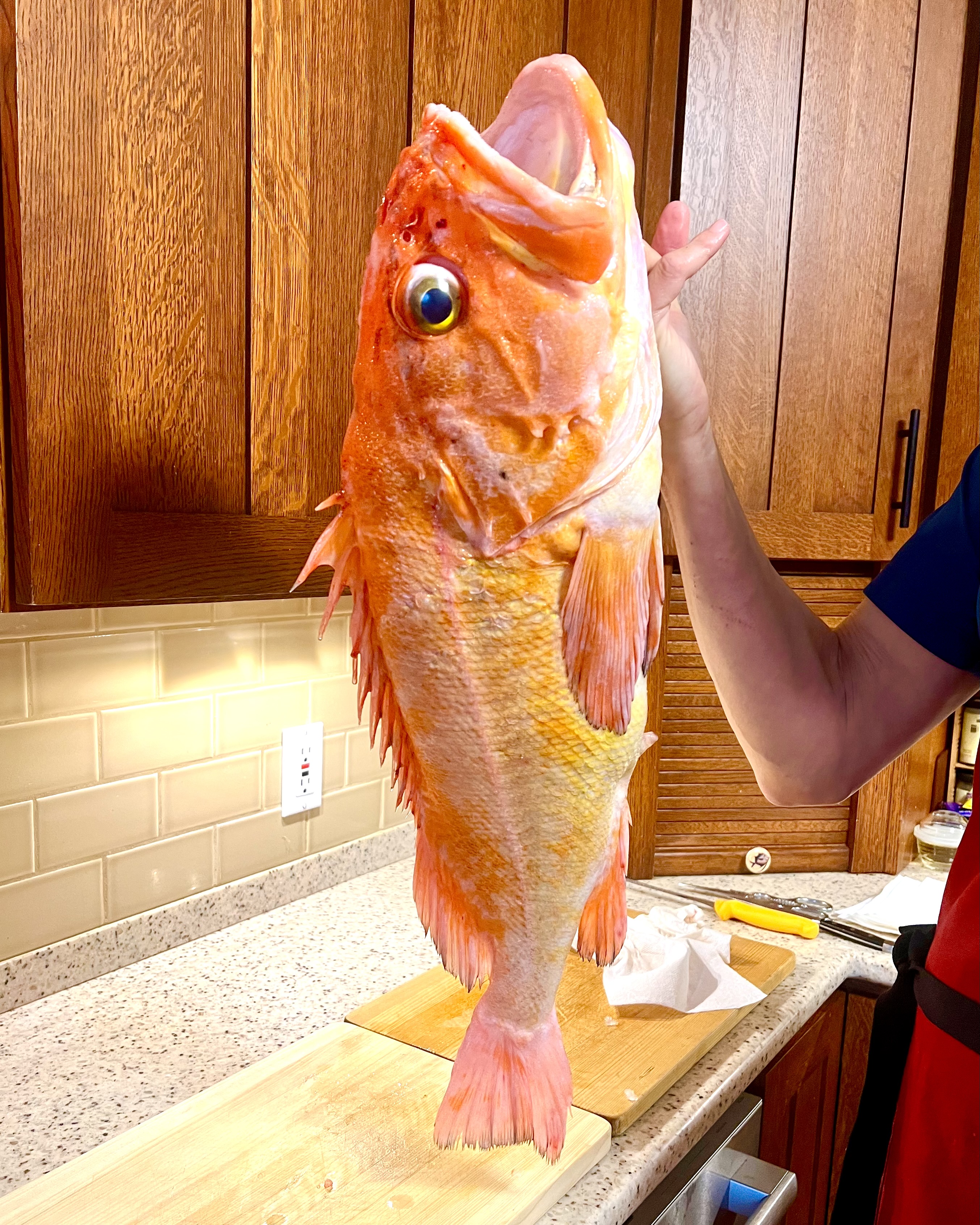 One of the many, many things we love about Cordova is receiving a notice that someone is selling freshly caught seafood down at the harbor. Yesterday’s “catch” were beautiful yelloweye rockfish. The meat is firm, white, and flakes beautifully. The collar, grilled, pan-fried or broiled, is reminiscent of lobster tail. What’s your favorite seafood?