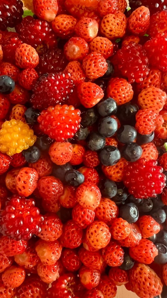 We are having quite a berry season. It was easy to gather premium wild blueberries and wild salmonberries for this tart. Look at the size of those golden berries! There’s a lot of things you could do with freshly picked berries…but nothing says “fresh berries” like fresh berries.