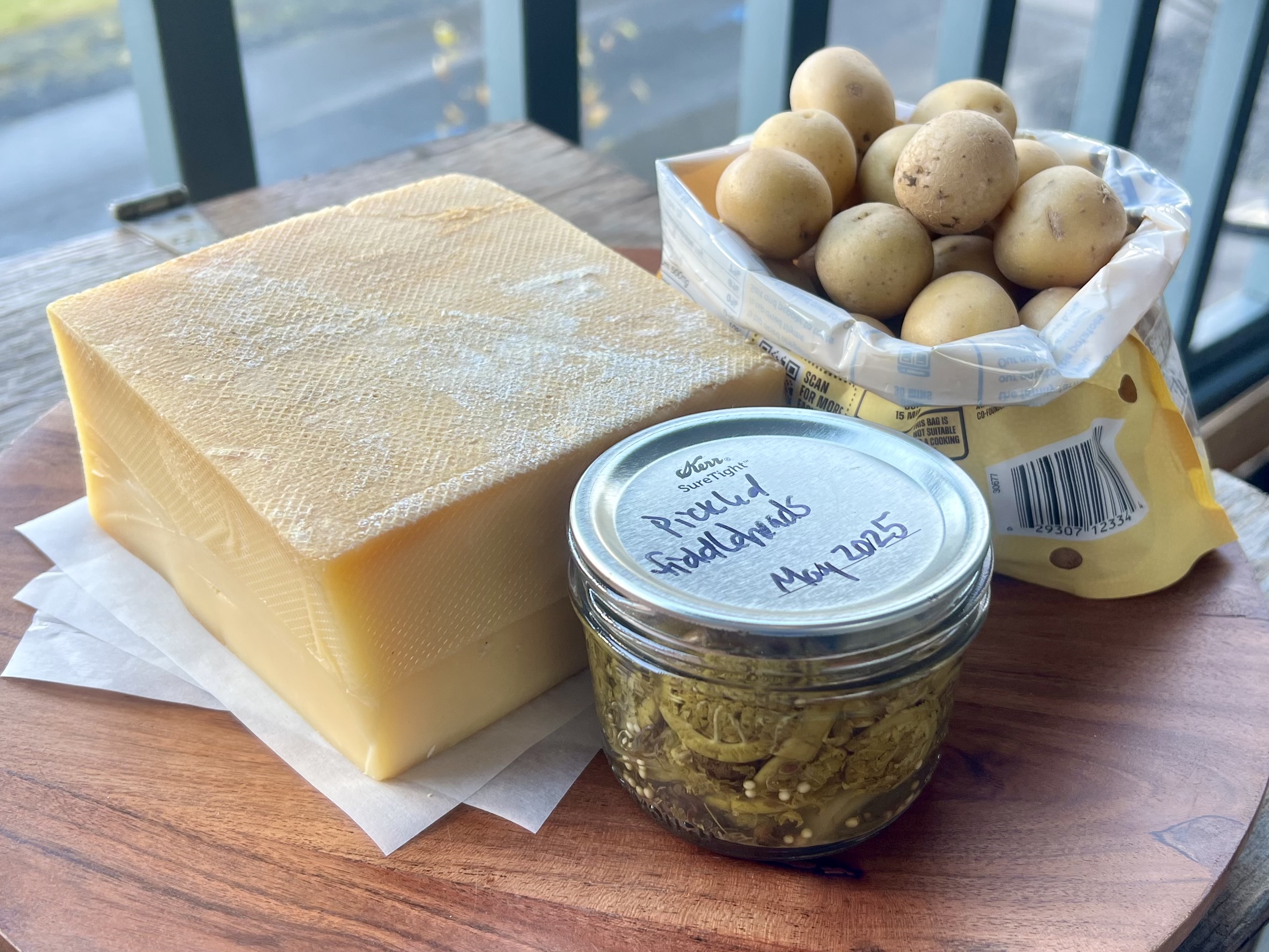 During this past summer, we cracked into our winter pantry and sampled one of these jars. The first savory sour bite flashed me straight back to an all-time favorite meal – Raclette. This flavorful and delightfully fatty cheese originated in Switzerland. It is traditionally served by heating the cheese over a flame and scraping the melted cheese atop boiled potatoes and pickles. There is no better meal to warm you up at the end of a chilly day!