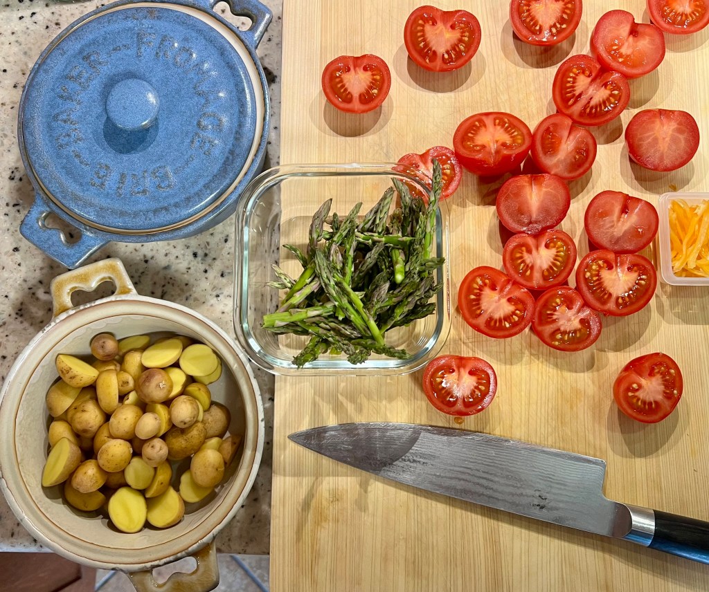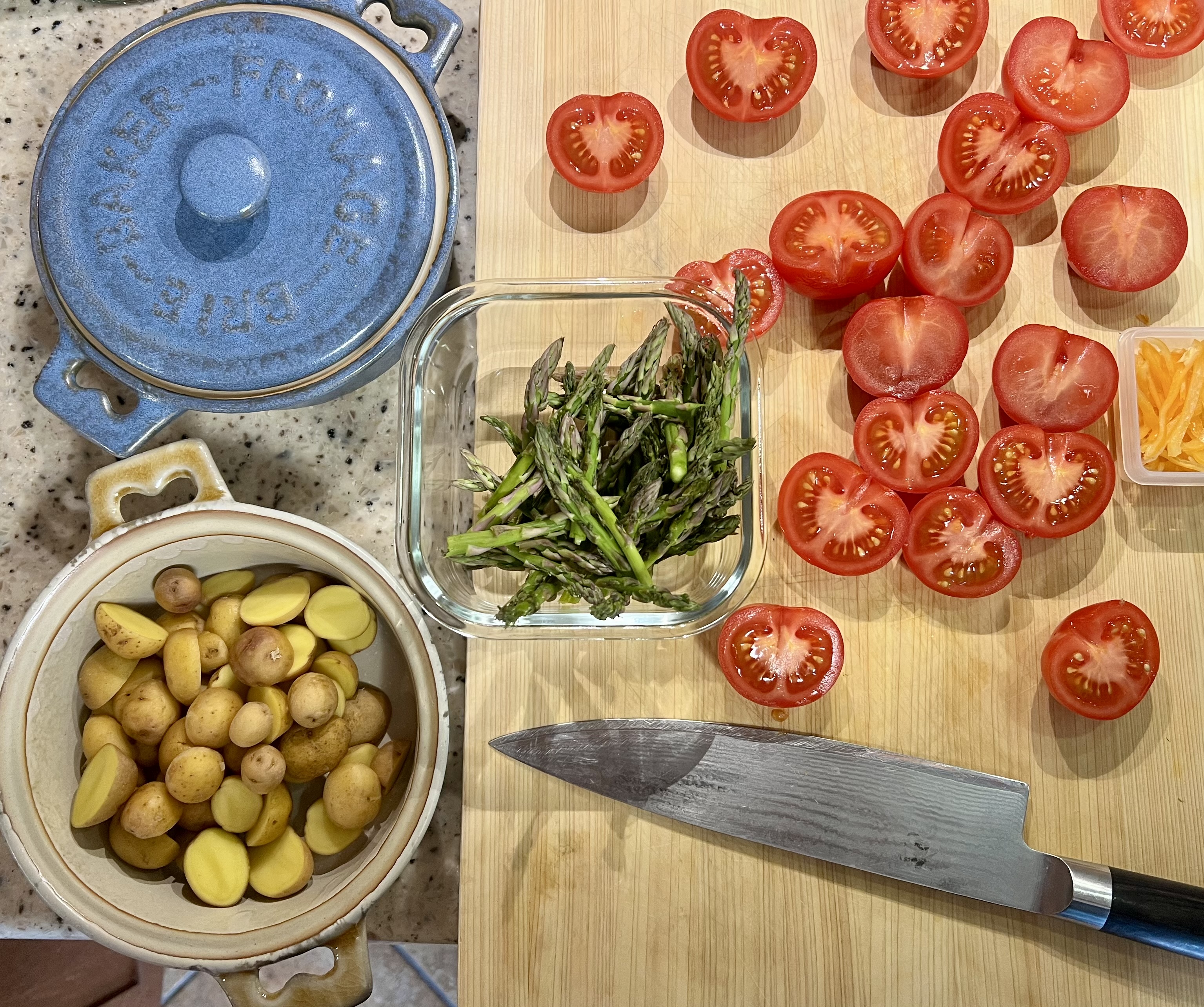 As it happens sometimes, we received a random box of ingredients, this time thanks to the Farmers to Families program. The box included a variety of items that someone defined as household staples. Included were roasted chicken quarters, hot dogs, potatoes, apples, milk, and yogurt. Jack quickly turned out a delicious soup with the chicken, potatoes, and other veggies we had in our fridge. My challenge was the yogurt. I usually make our own yogurt, so we already had more than enough for our regular menu.