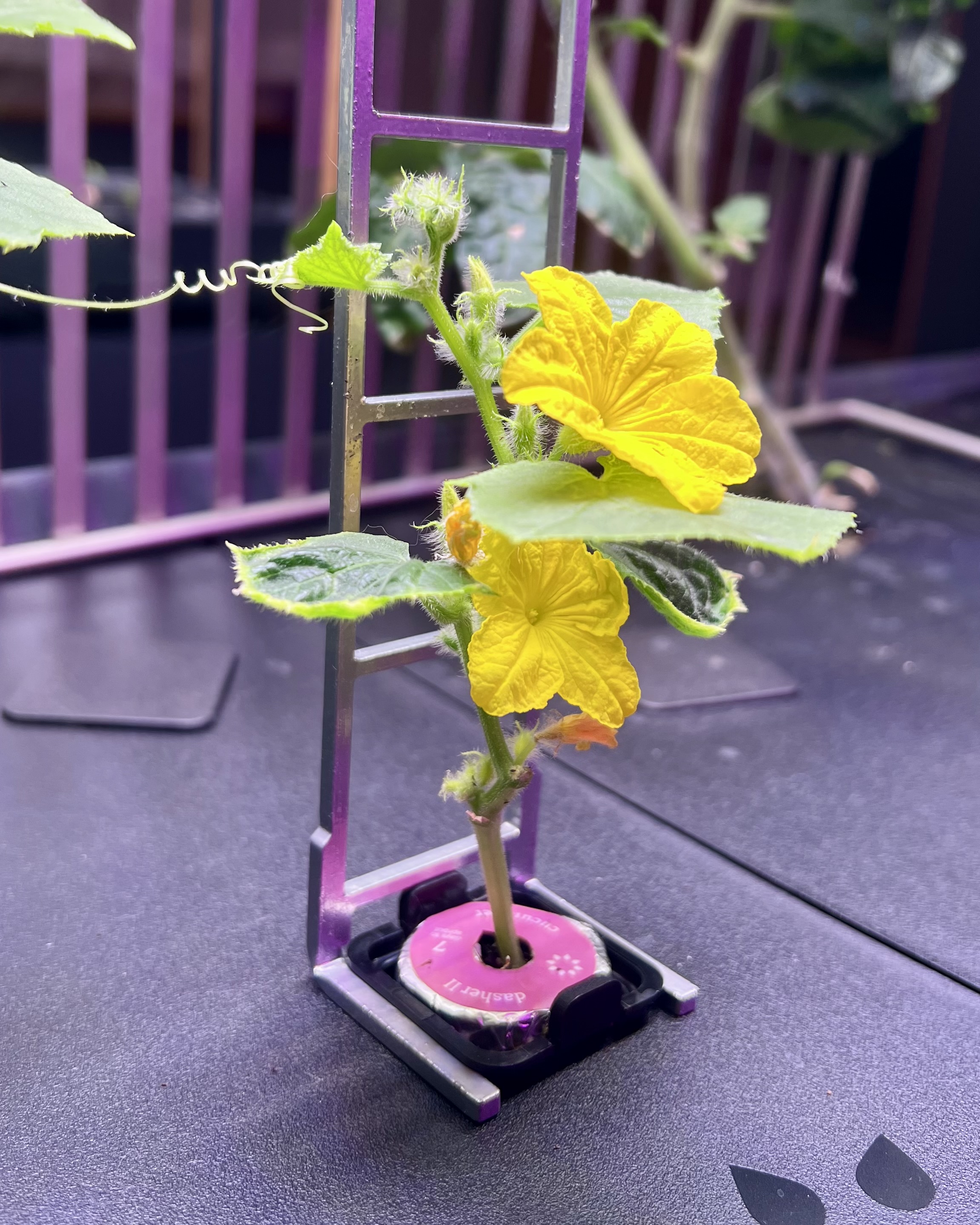 Part of our Alaskan culinary experimentation includes producing fruit and vegetables in a year-round hydroponic garden. We’ve been wildly successful growing our own gourmet lettuces. This little cucumber cutie is flowering like crazy. A little hand pollination and patience will answer the question – will it or won’t it bear fruit?