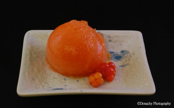 Like everything else that grows on the tundra, cloudberry plants reach only a few inches off the ground. They grow in clusters on low mounds that rise a foot or so above the wet ground. Picking them requires lots of squats and bends making for a good workout. Jack was doing an uncharacteristic amount of berry eating while he was picking and finally came to a conclusion: “These berries would make really good sorbet.” Although I’d never made sorbet, I knew right away that he was onto something.