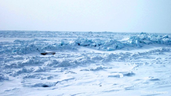 A small skiff seems to await the Chukchi Sea’s thaw.