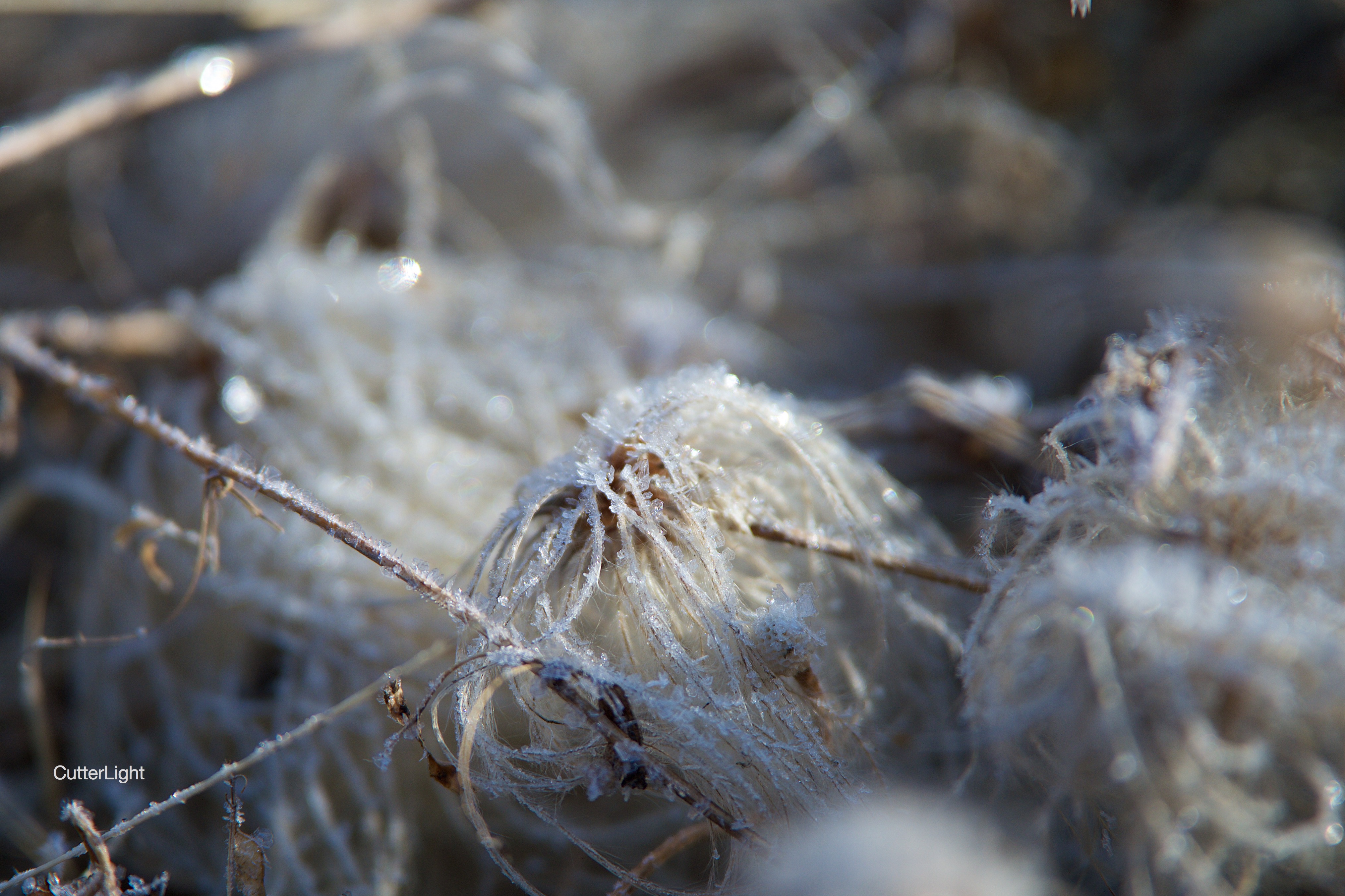 Early morning frost turned the withered remnant of last fall’s flowers into frozen jellyfish.