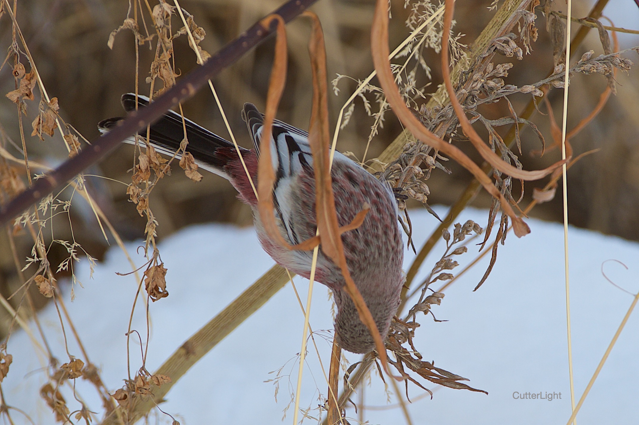 …while in shaded pockets where snow still lingered, newly arrived long-tailed rosefinches filled up on last year’s store of seeds. The willows and grasses along the Tuul provide the perfect habitat for many species of birds. And, judging by tracks in the snow, rabbits as well.