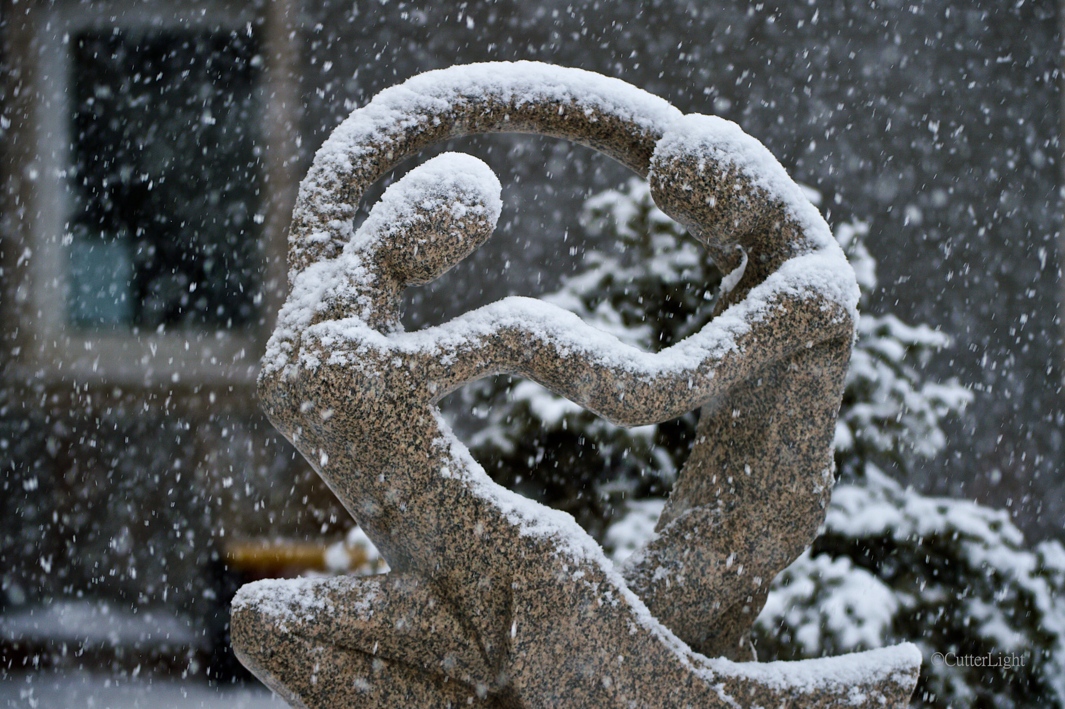 Granite Dancers in Spring Snow I walk passed this sculpture at least two times a day, every day, but this was the first time I photographed it. On this day, I knew before I left the apartment that I wanted to record it in the particular light that was falling. The snow was a bonus, adding depth and additional movement. Nikon D4, Nikkor 200-400mm f/4G IF-ED II, 200mm, ISO 100, f/4, 1/200