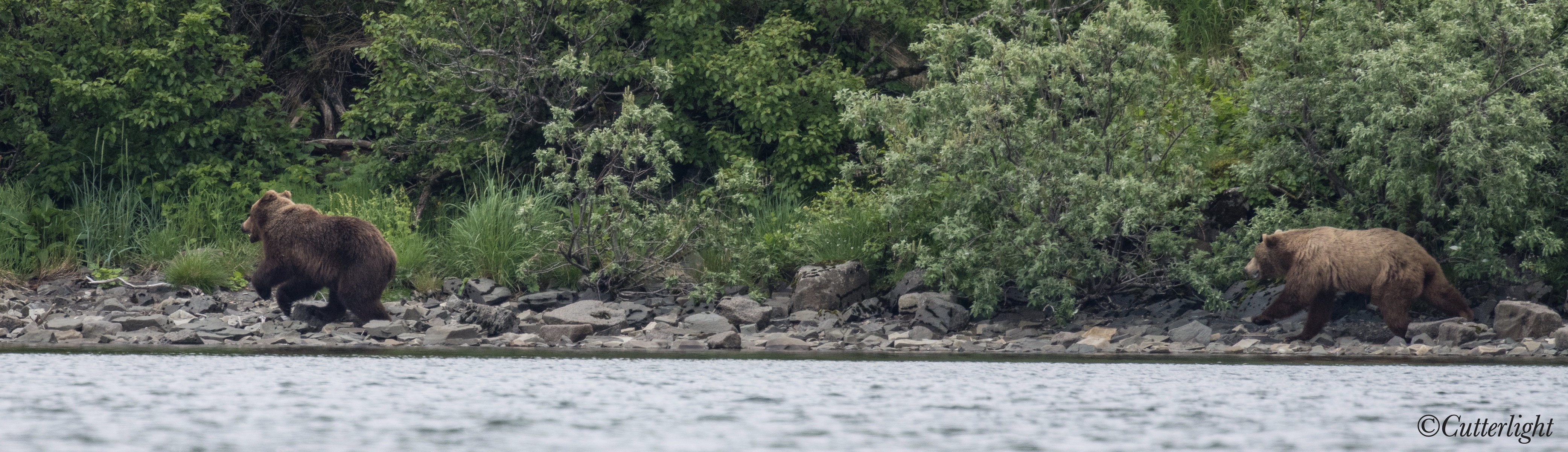Watch a shoreline for any length of time, cruise up and down the river in a skiff, or simply keep your eyes open as you travel through the village: you’ll see bears. From now through November, we don’t even make the five-minute walk to the Post Office without carrying bear spray. Bears use the little creek we cross on that walk as a thoroughfare. There were four down in there just last night. Two more today. That we saw.